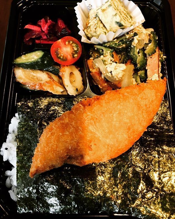 雨降りの土曜日ですがよろしくお願いします🐫今日のメインはゴーヤチャンプルーと白身フライです🍱#府中 #居酒屋 #国際通り #飲んべぇ食堂らくだ屋 #らくだ屋 #テイクアウト弁当 #テイクアウト #お弁当