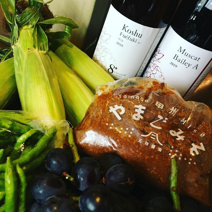 地元の山梨産の食材を、沢山買ってきました❗️ワイン、野菜、味噌、ぶどう🍇お試しあれ🐫#府中 #居酒屋 #国際通り #飲んべぇ食堂らくだ屋 #らくだ屋 #地酒 #日本酒 #山梨 #甲州ワイン #ベリーa #朝どれとうもろこし #青唐辛子 #やまごみそ #大峰