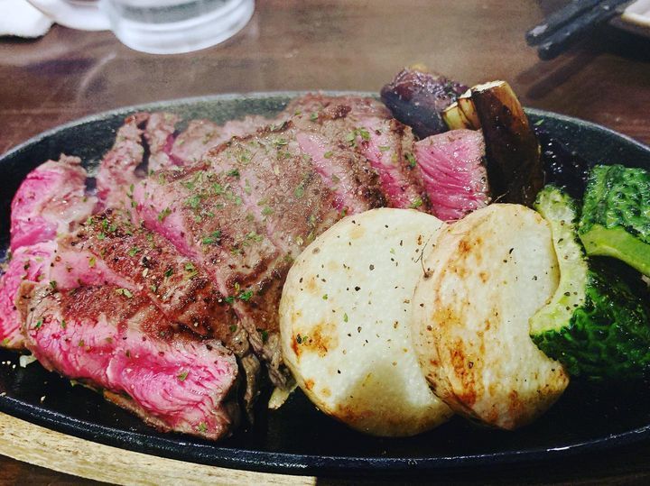 1g8円にて明日も焼きます🐫#府中 #居酒屋 #国際通り #飲んべぇ食堂らくだ屋 #らくだ屋 #usビーフ #ステーキ #ミスジ #鉄板