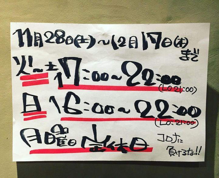 新型コロナウイルス感染拡大防止のため営業時間が変更になります。よろしくお願いいたします。