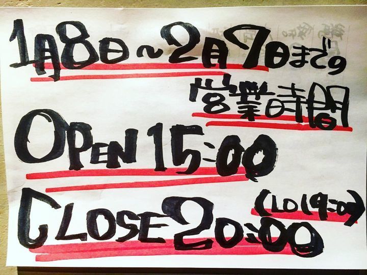 緊急事態宣言発令に伴い明日からの営業時間はとりあえず