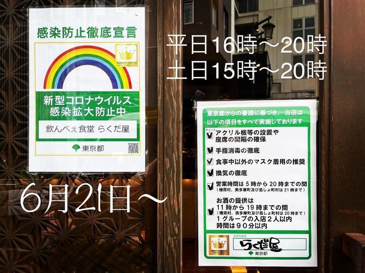 ご迷惑をおかけしますが、ご協力よろしくお願いします。冷えた生ビール🍺うまい日本酒🍶旨い肴でお待ちしてます😊#府中 #居酒屋 #国際通り #飲んべぇ食堂らくだ屋 #らくだ屋 #地酒 #日本酒 #時短営業 #営業再開のお知らせ #生ビール #まんえん防止等重点措置