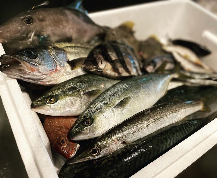 福井県より鮮度抜群の魚達が入荷してます!ハマチ、鯵、鱸、丸太、カマス、ウマズラ、鯛など多数😊本日も16時OPENです🍻